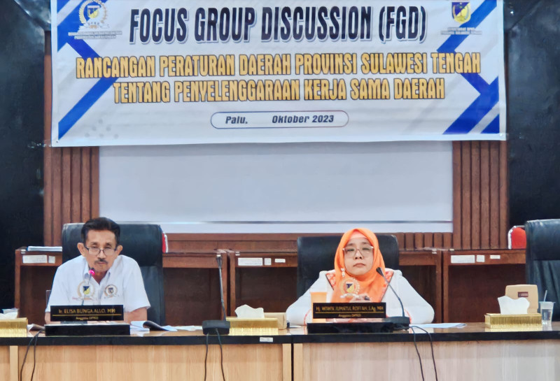 ReferensiA.id- Komisi I DPRD Sulawesi Tengah (Sulteng) menggelar Focus Group Discussion (FGD) membahas rancangan peraturan daerah Sulteng tentang kerja sama Daerah pada Selasa 10 Oktober 2023.